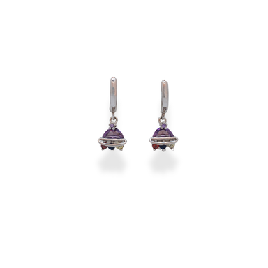 Elevate your jewellery collection with these striking silver and purple cubic zirconia hanging earrings. Crafted with precision, the vibrant purple...