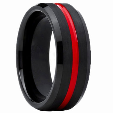 This Tungsten Ring features a striking red oil brushed finish combined with a bevel edge design, offering both durability and a modern aesthetic.
