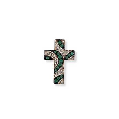 Enhance your picture of grace and elegance with this one-of-a-kind 18ct yellow gold diamond and emerald cross pendant. Radiant and ornate, this lux...