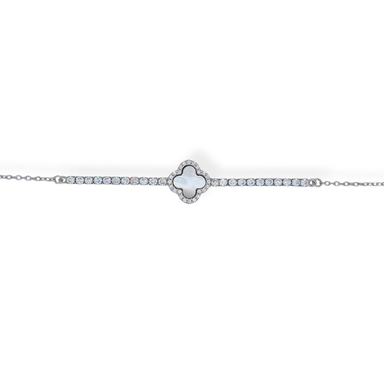 Elevate your style with this exquisite silver bracelet inspired by the iconic Van Cleef design. Meticulously crafted with sparkling cubic zirconia ...