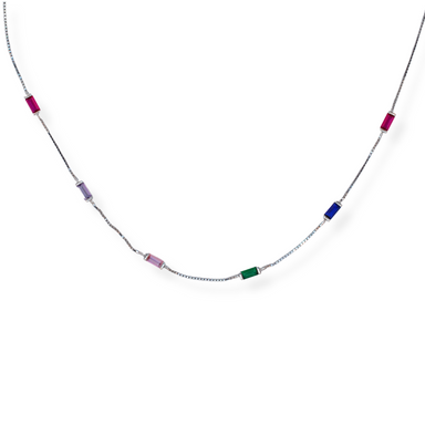 Elevate your ensemble with this sophisticated silver necklace and earrings set, beautifully accented with colorful enamel and sparkling cubic zirco...