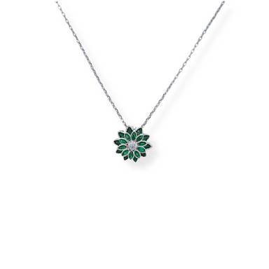 Elevate your everyday elegance with this refined silver necklace, featuring a delicate flower design adorned with brilliant blue cubic zirconia sto...