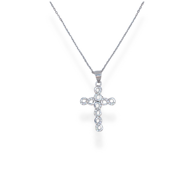 Elevate your everyday elegance with this striking silver cross pendant necklace, adorned with vibrant cubic zirconia stones that catch the light be...