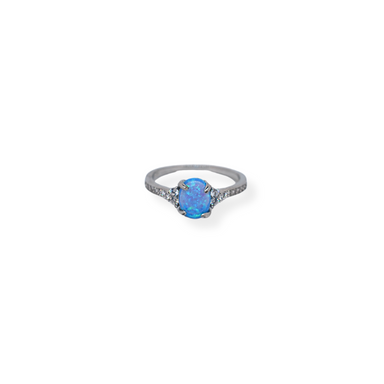 This silver ring features a stunning blue opal centerpiece accentuated by sparkling cubic zirconia stones. Crafted for durability and elegance, the...