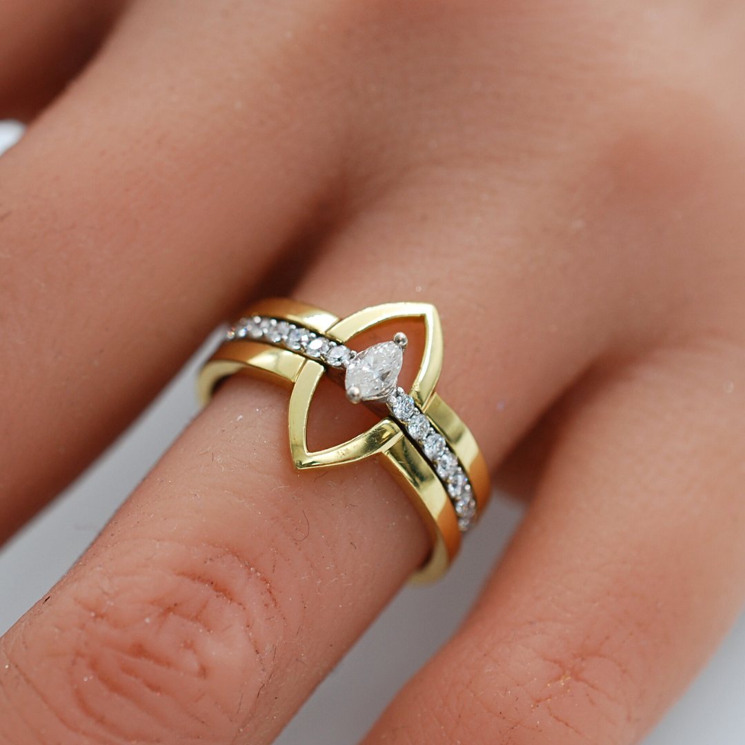 This beautiful 18ct 2/tone yellow and white gold diamond ring is perfect for any occasion. The center diamond is 0.165ct, surrounded by a halo of 0.21ct round diamond accents. Sure to sparkle even in the darkest of rooms.