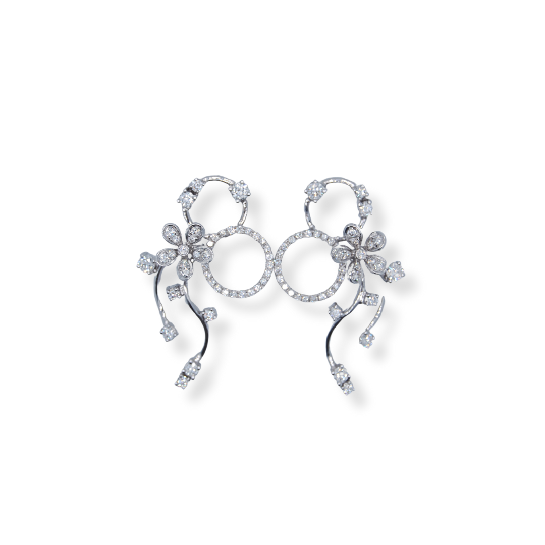 These elegant 18ct white gold flower diamond earrings are adorned with a total of 0.66ct diamonds. The perfect addition to any jewelry collection, these earrings add a touch of sophistication and sparkle to any outfit. 30mm