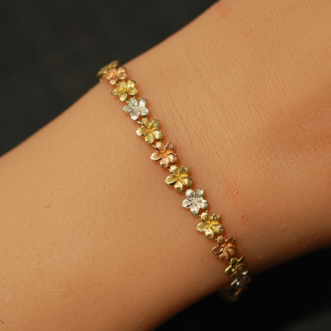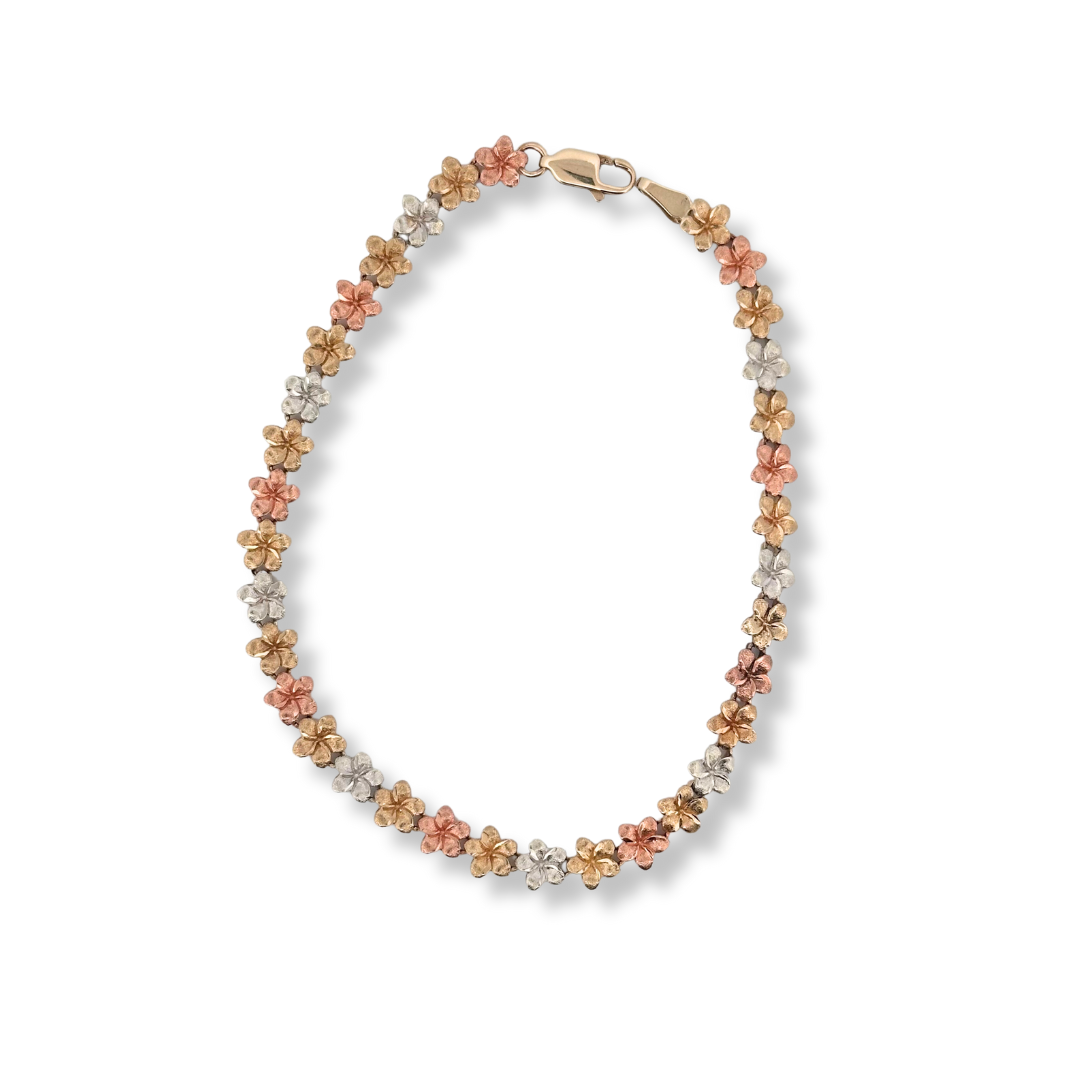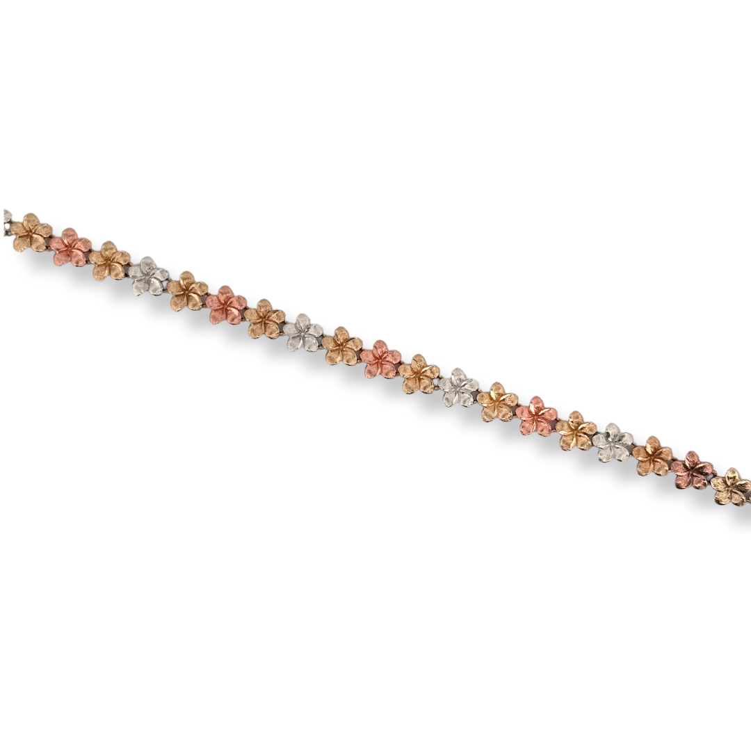 Adorn your wrist with this exquisite 9ct 3/tone bracelet. Crafted with a combination of yellow gold, white gold, and rose gold, it offers a timeless and elegant look. This piece of jewelry will add a touch of sophistication to any look. 20cm.