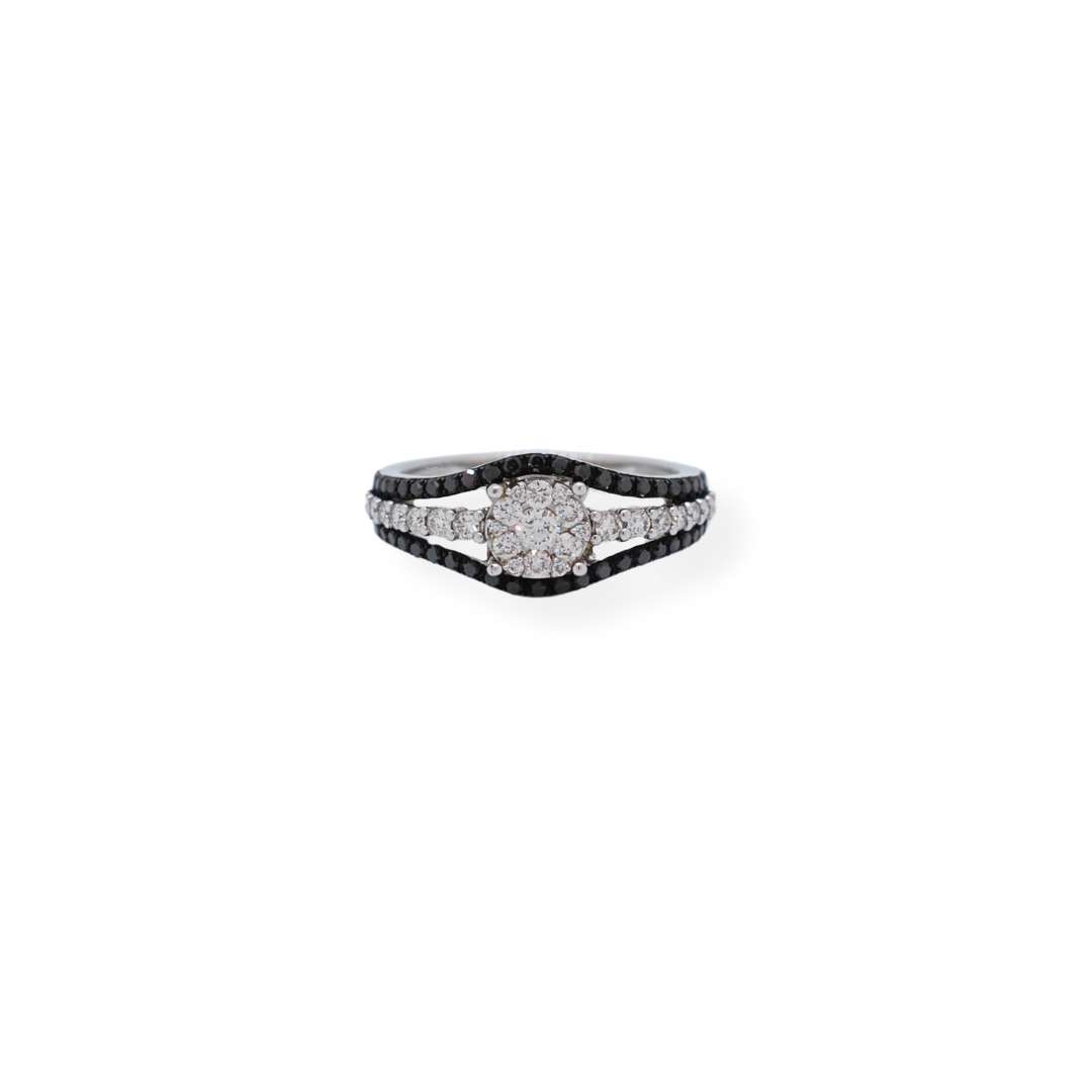 This stunning 9ct gold black diamond ring showcases 0.32ct of black stones and a 0.50ct of diamonds. Crafted in 9ct white gold, this ring is perfect for any special occasion. Wear it to add a bit of glamour and sparkle to your style. (202090)
