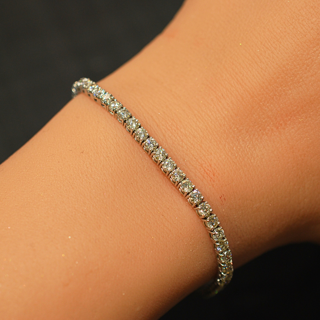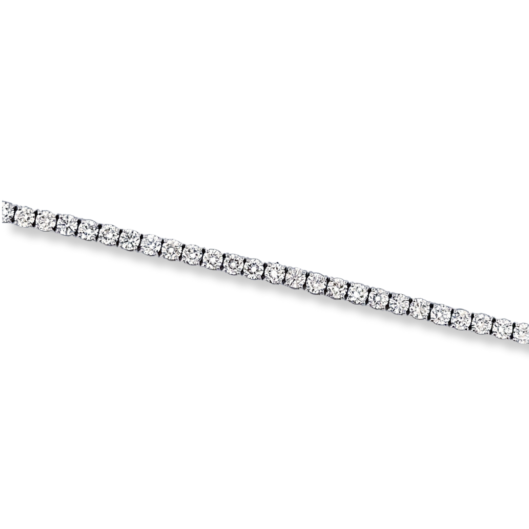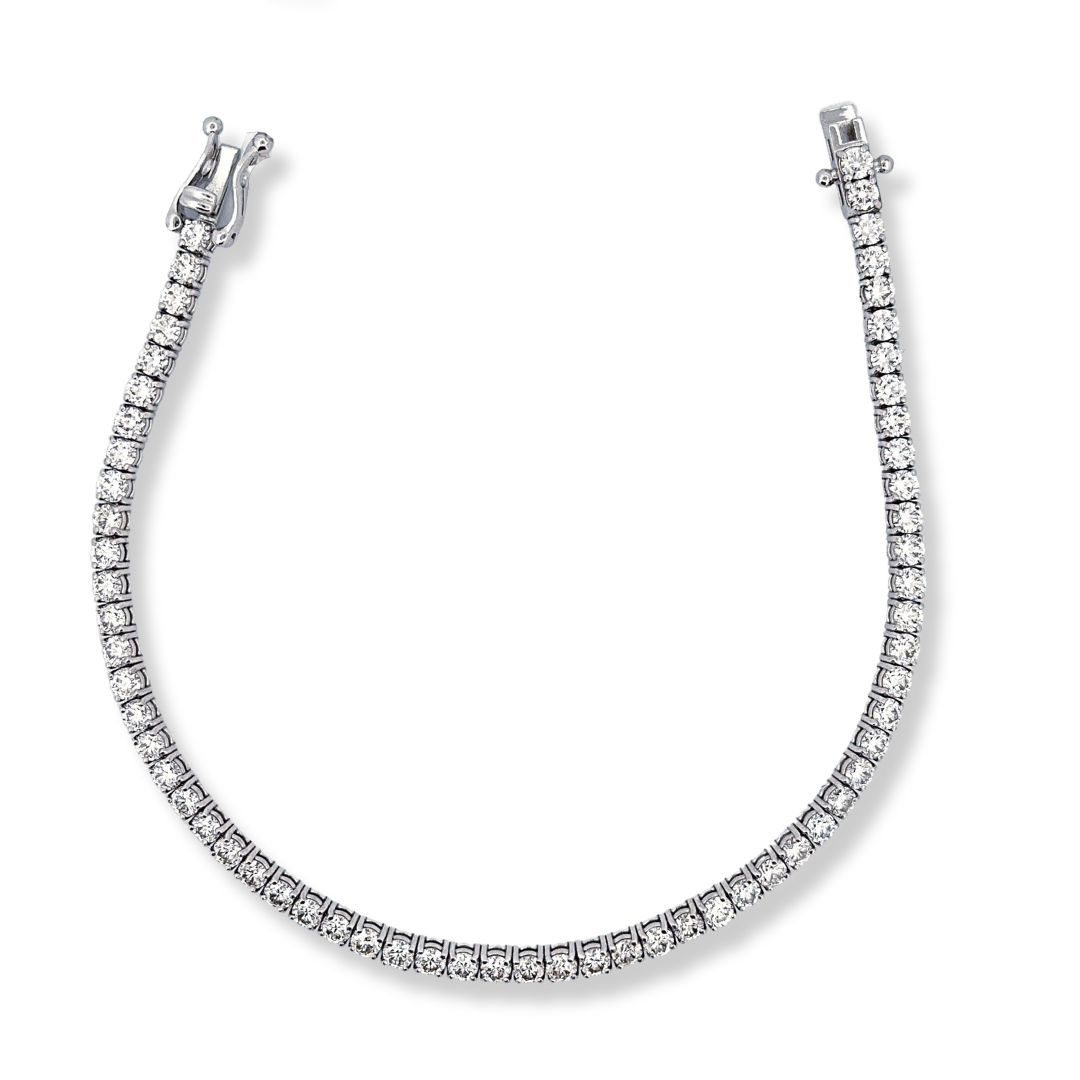 This exquisite 9ct white gold diamond tennis bracelet features a sparkling display of 5.05ct diamonds. Its luxurious design is perfect for dressing up any formal ensemble. Crafted with expert skill, its timeless style is sure to last the test of time. 20cm