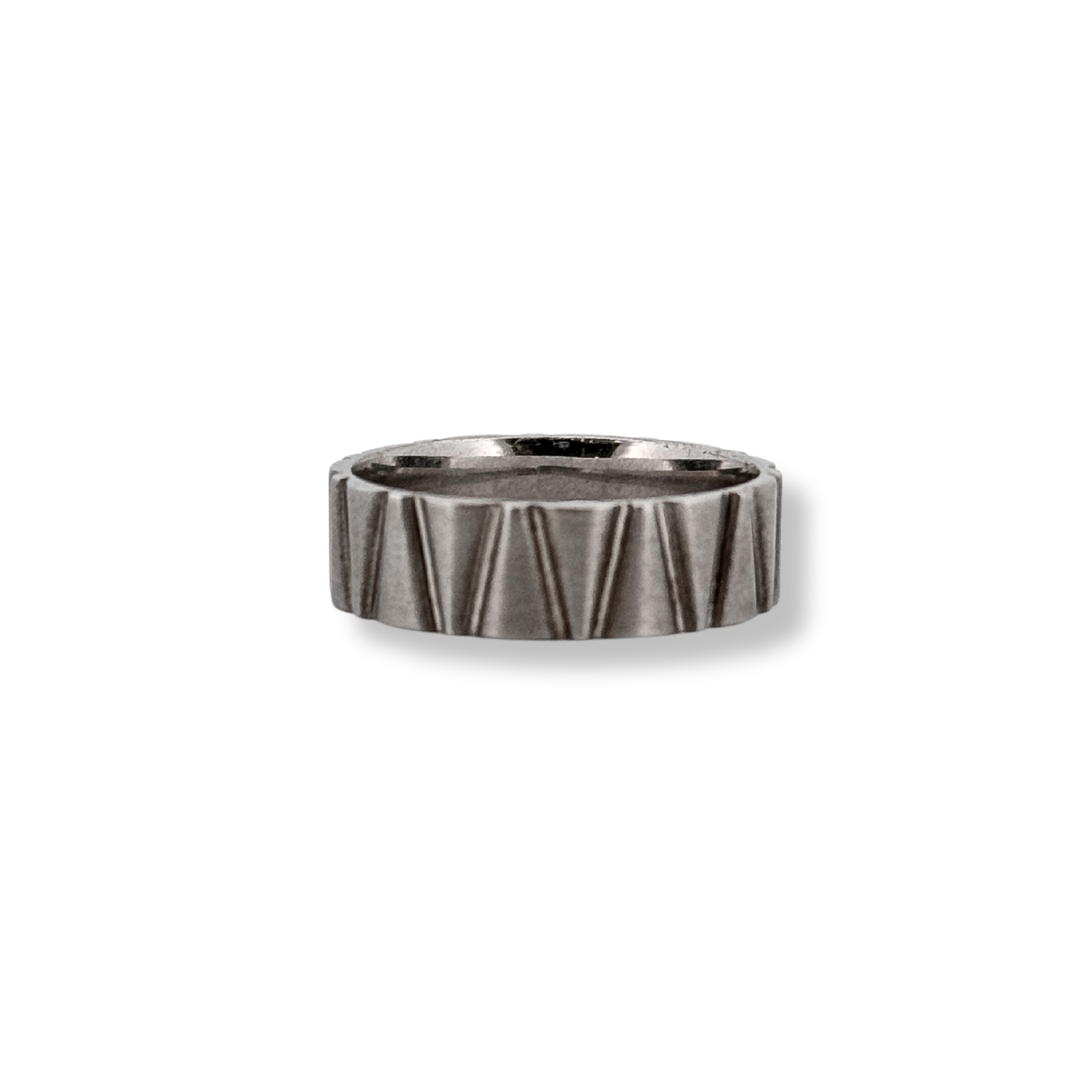 This exquisite silver band ring is the perfect addition to your wardrobe. Its unique design will capture all the admiration with its classic sophistication. Crafted with the finest silver, this ring is sure to become a timeless staple in your collection.
