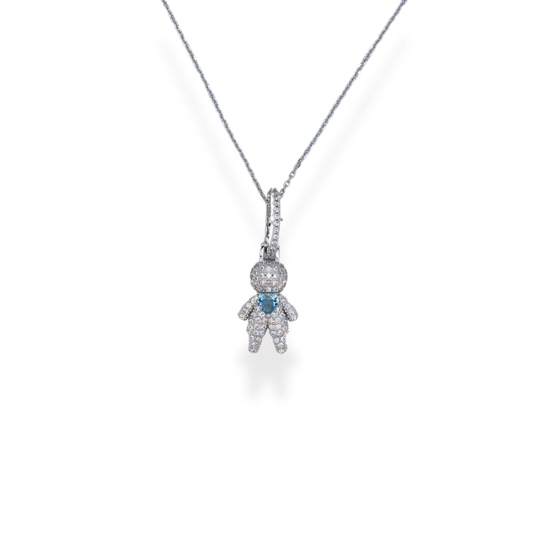 This silver cz boy pendant necklace is a charming accessory that adds a touch of elegance to any outfit. Crafted from high-quality silver and adorned with sparkling cz stones, this necklace is both durable and eye-catching. 45cm
