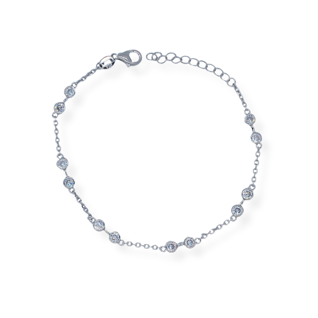 Add a touch of elegance to your outfit with our Silver CZ Bracelet. Made with high-quality silver and adorned with sparkling CZ stones, this bracelet will elevate any look. Perfect for special occasions or everyday wear, this bracelet is a must-have for your jewelry collection. 20cm