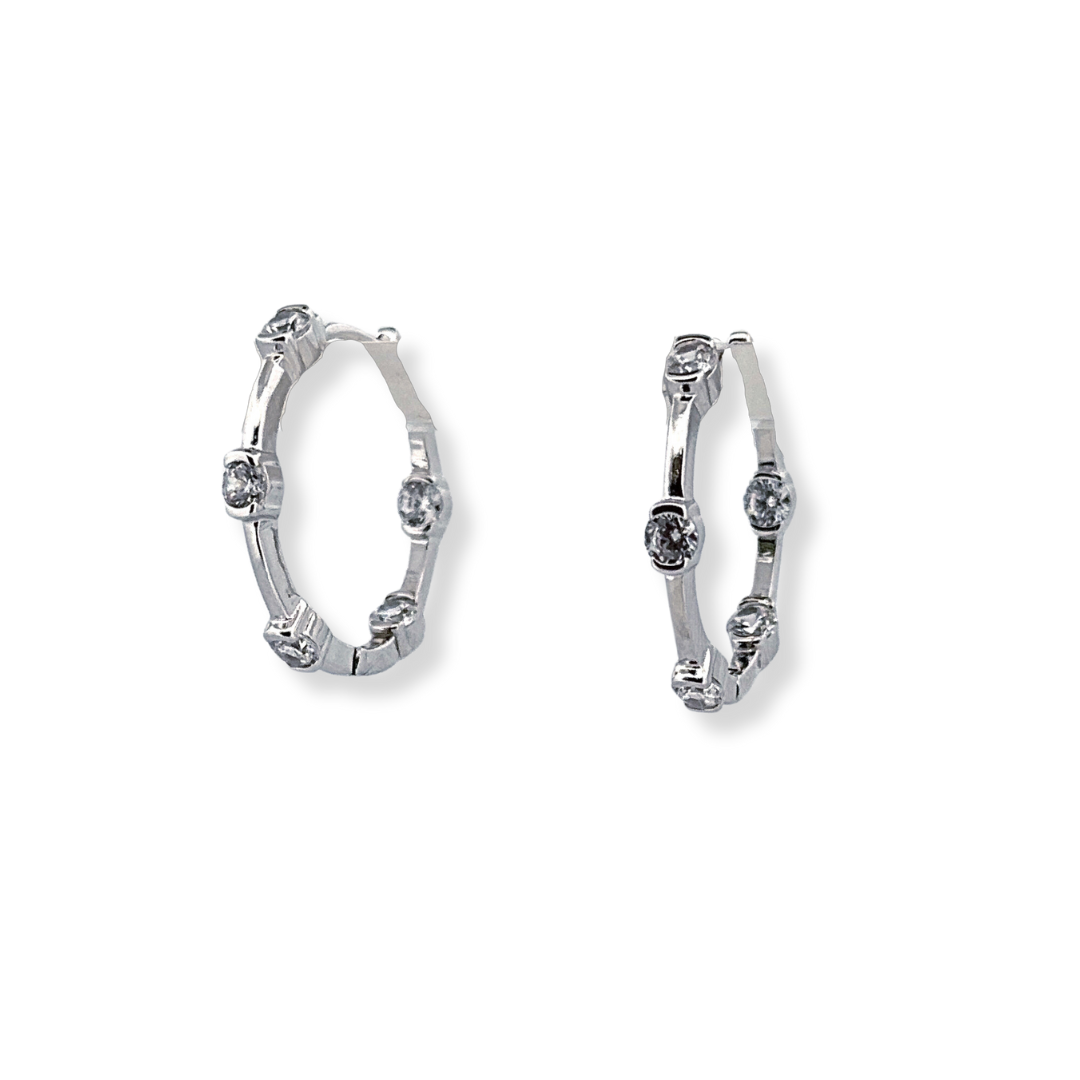 These Silver CZ Hoop Earrings combine exquisite craftsmanship with timeless elegance for a truly sophisticated look. Ideal for any special occasion, these dazzling earrings will create a stunning impression. The perfect finishing touch for your outfit, these earrings are sure to become a treasured favorite.