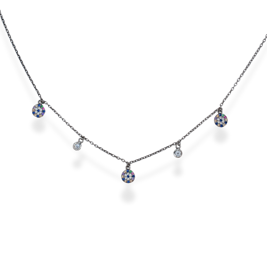 silver cz multicoloured necklace
