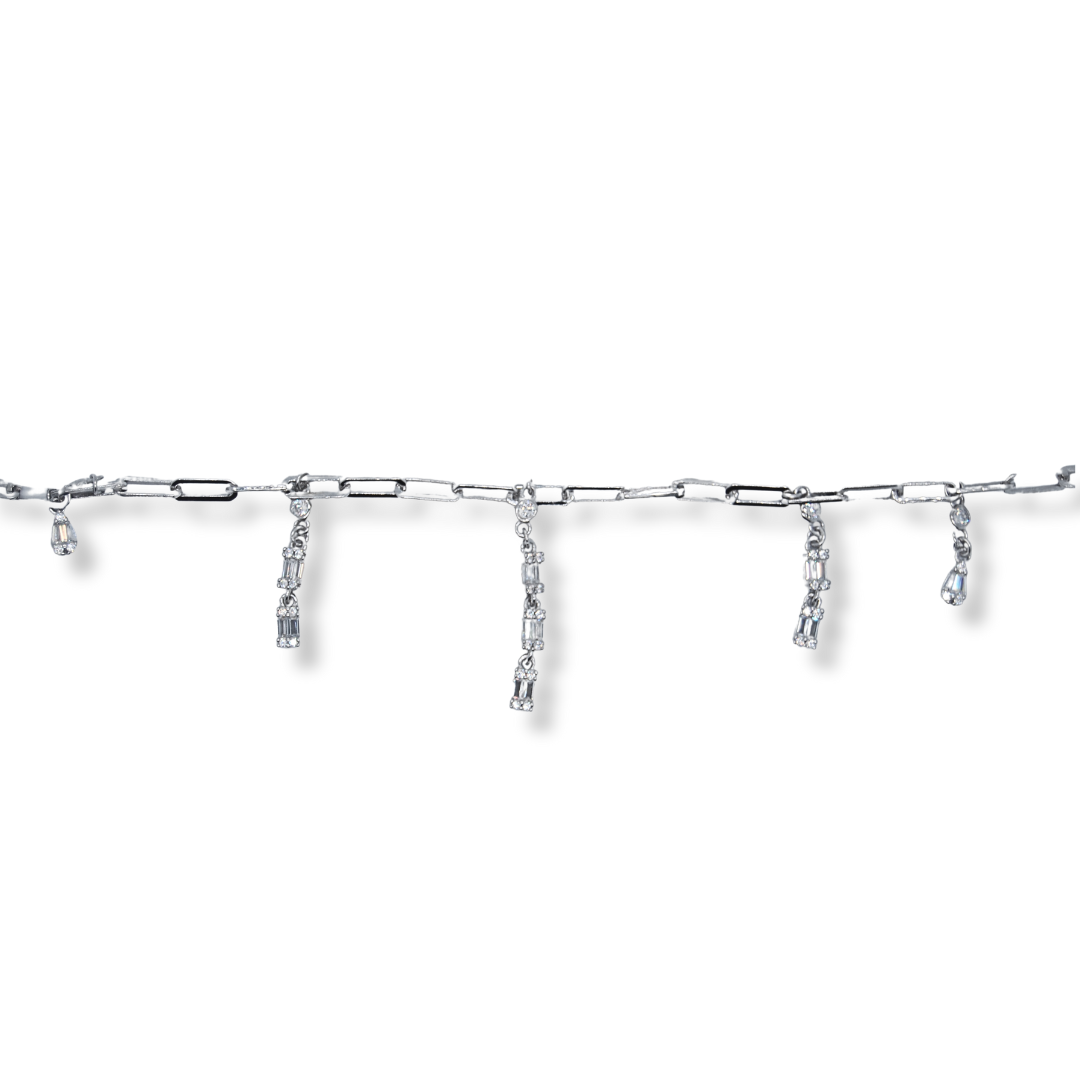 This exquisite silver paperclip necklace features sparkling cz stones, lending an air of luxury to any look. Crafted with the highest quality materials, this necklace adds a touch of sophistication and refinement to any ensemble. 50cm.