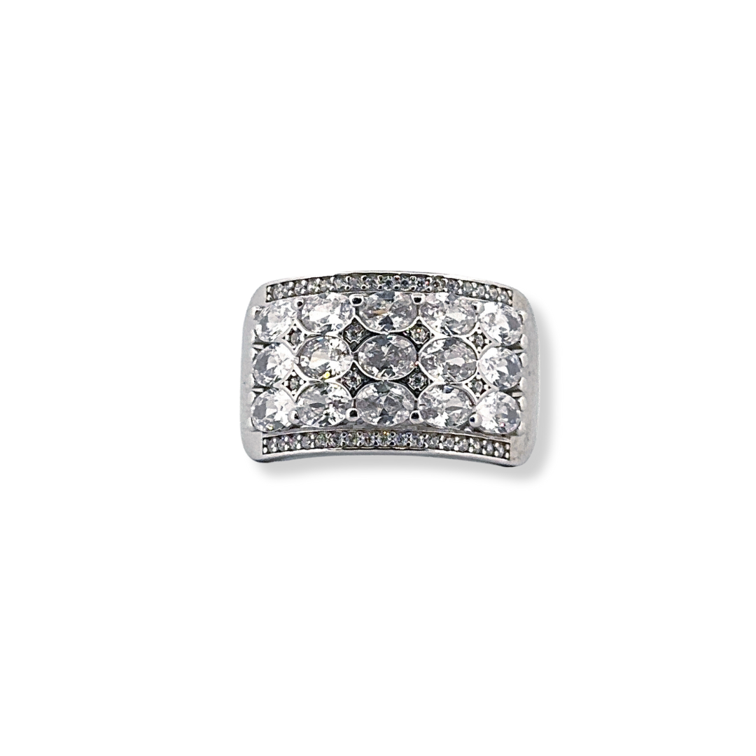 Enhance any look with this luxurious silver cz ring. Crafted from pure silver with dazzling cz stones, this exquisite piece is the perfect statement jewelry accessory to make any outfit shine. Luxuriously crafted for a timeless aesthetic.