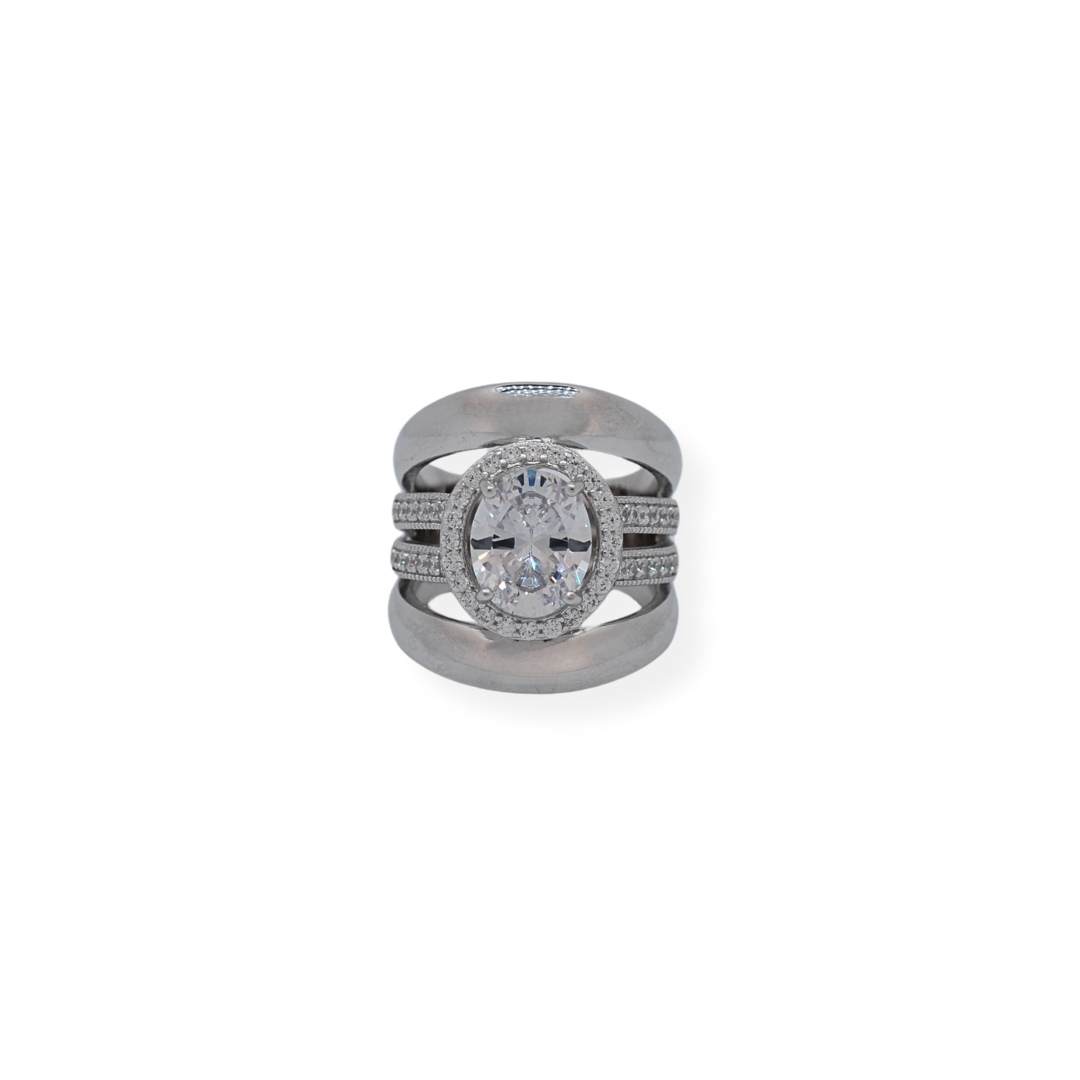 This elegant silver cz ring adds a touch of sophistication to any outfit. The high-quality silver and sparkling cubic zirconia stones make it a timeless and versatile accessory.