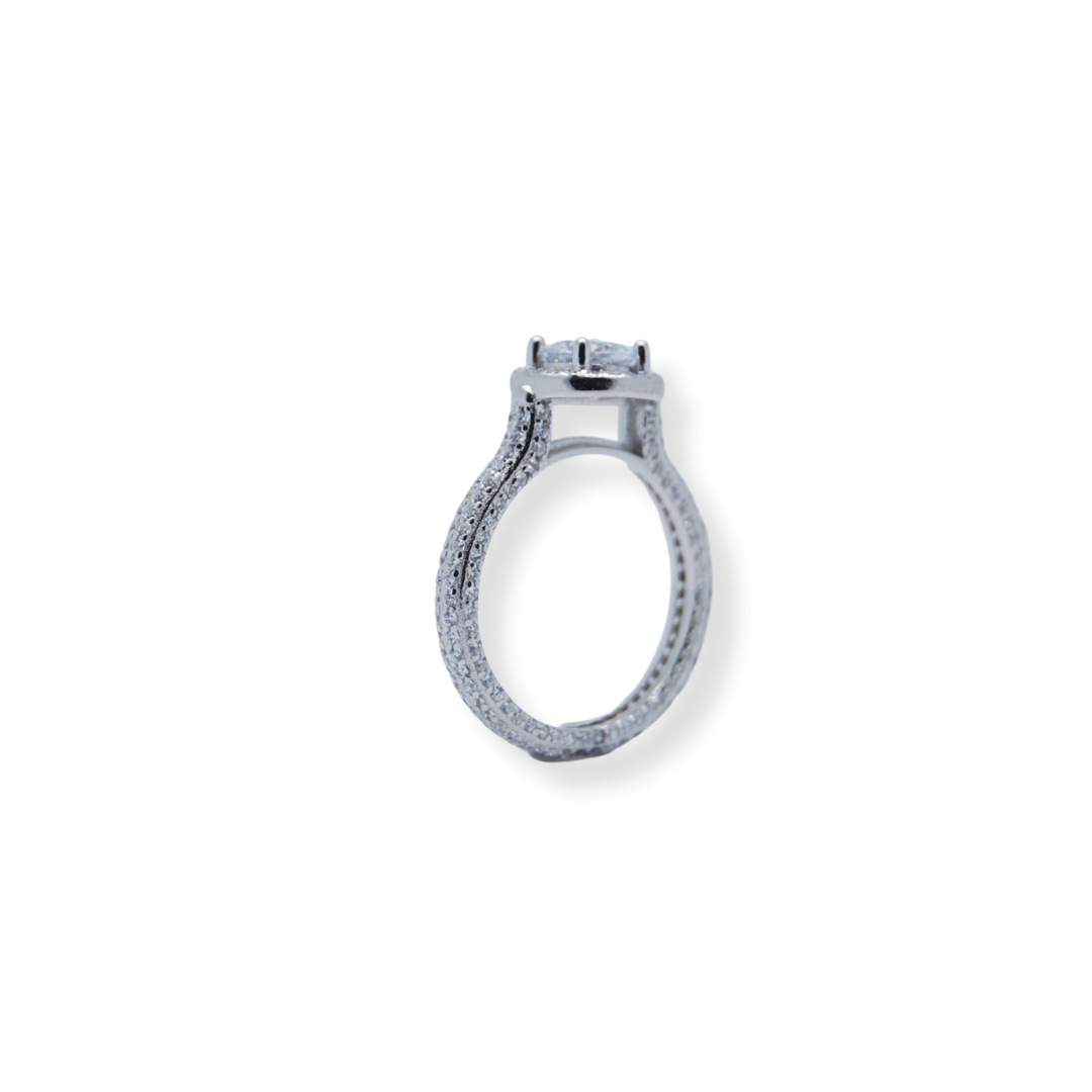This elegant silver CZ ring is expertly crafted for a stunning and timeless look. Made with high-quality materials, this ring is perfect for adding a touch of sparkle to any outfit.