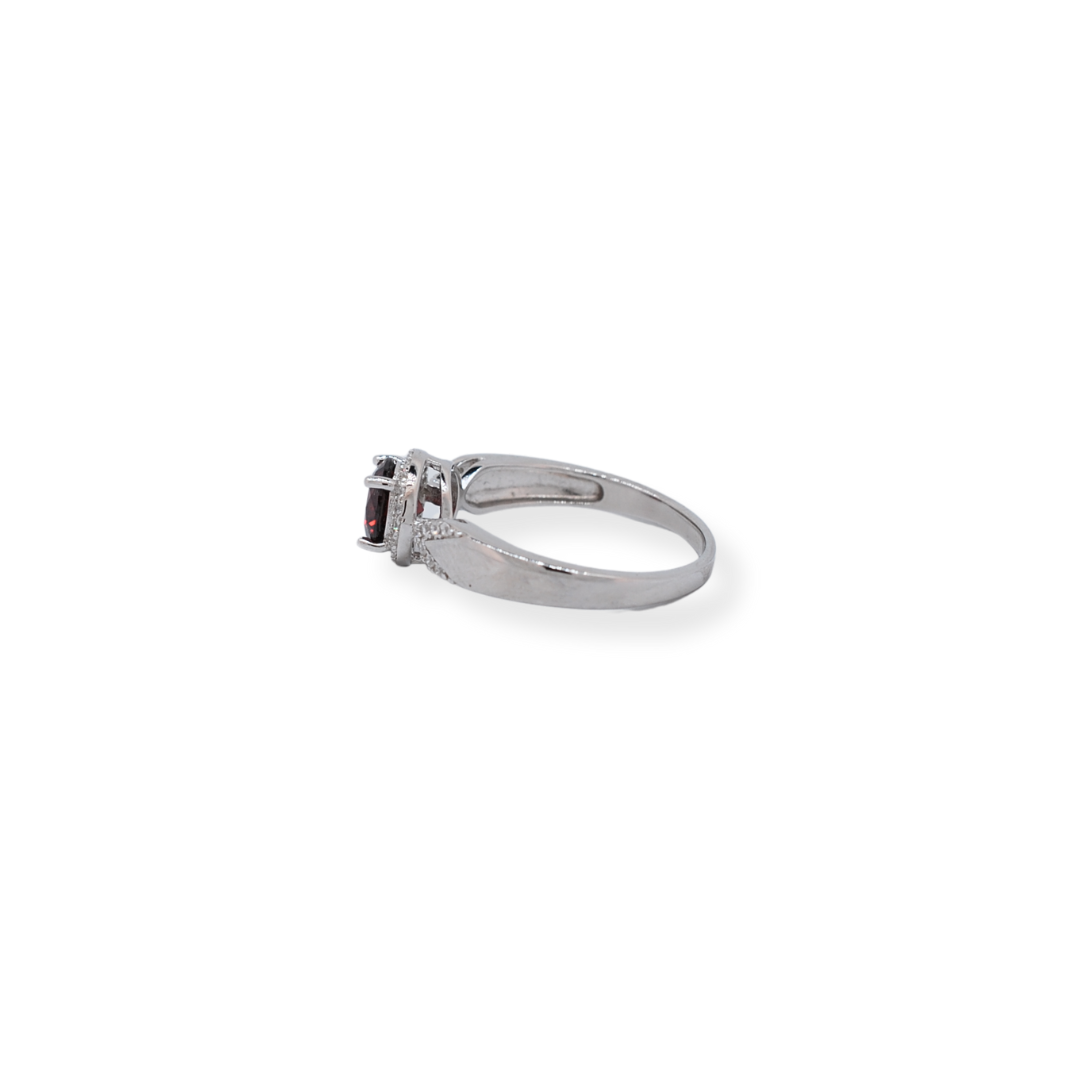 This sophisticated silver cz ring features a stunning red cz stone, adding a bold and elegant touch to any outfit. Made with high-quality materials, this ring is both durable and stylish, making it the perfect upgrade to your jewelry collection.