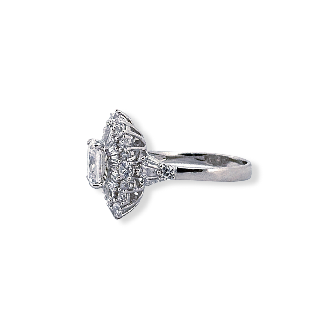 Experience luxurious elegance with this stunning silver cz ring. Crafted from the finest silver and encrusted with cubic zirconia, this ring is guaranteed to add a touch of sophisticated class to any outfit. Any jewelry lover is sure to be wowed by its exquisite craftsmanship, creating a truly timeless piece you'll love wearing.