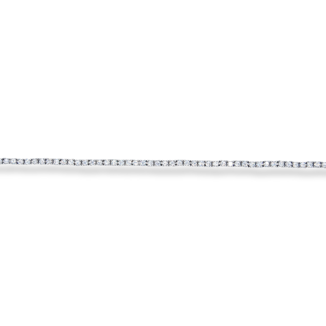 This luxurious silver CZ tennis bracelet is the perfect addition to any outfit. Exquisitely crafted with premium quality silver, this bracelet will add a touch of elegance and sophistication to your look. The dazzling CZ stones glisten with every turn of the wrist, making it an eye-catching and effortless piece of jewellery. 20cm